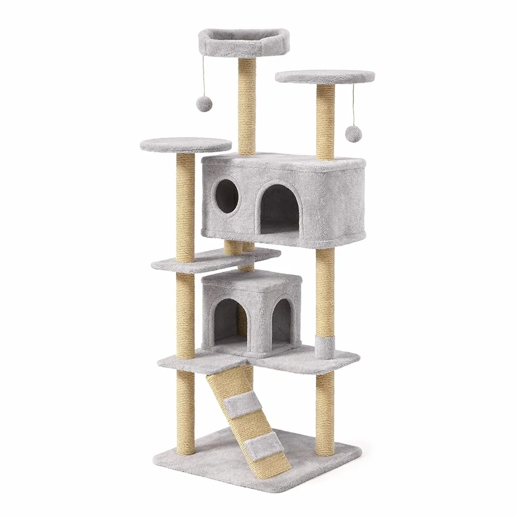 Arbre à chat en bois et sisal gris