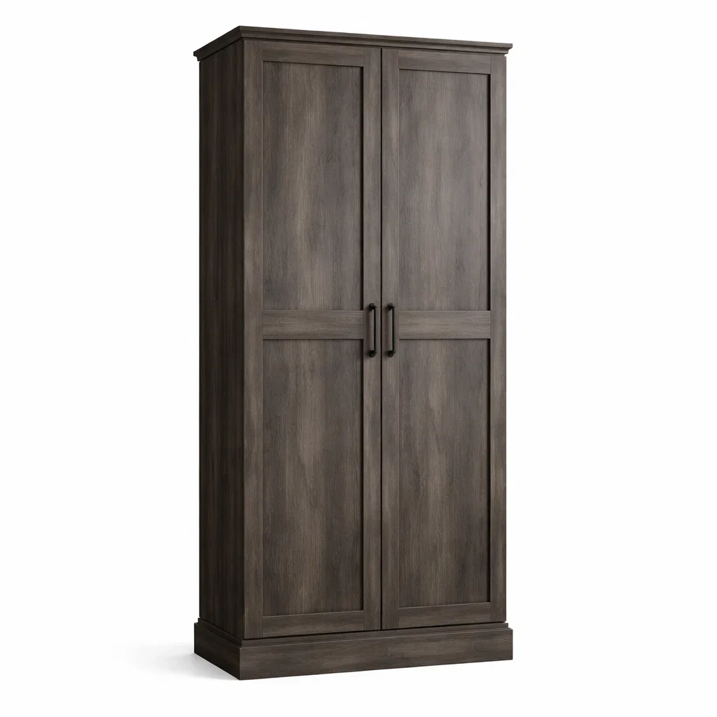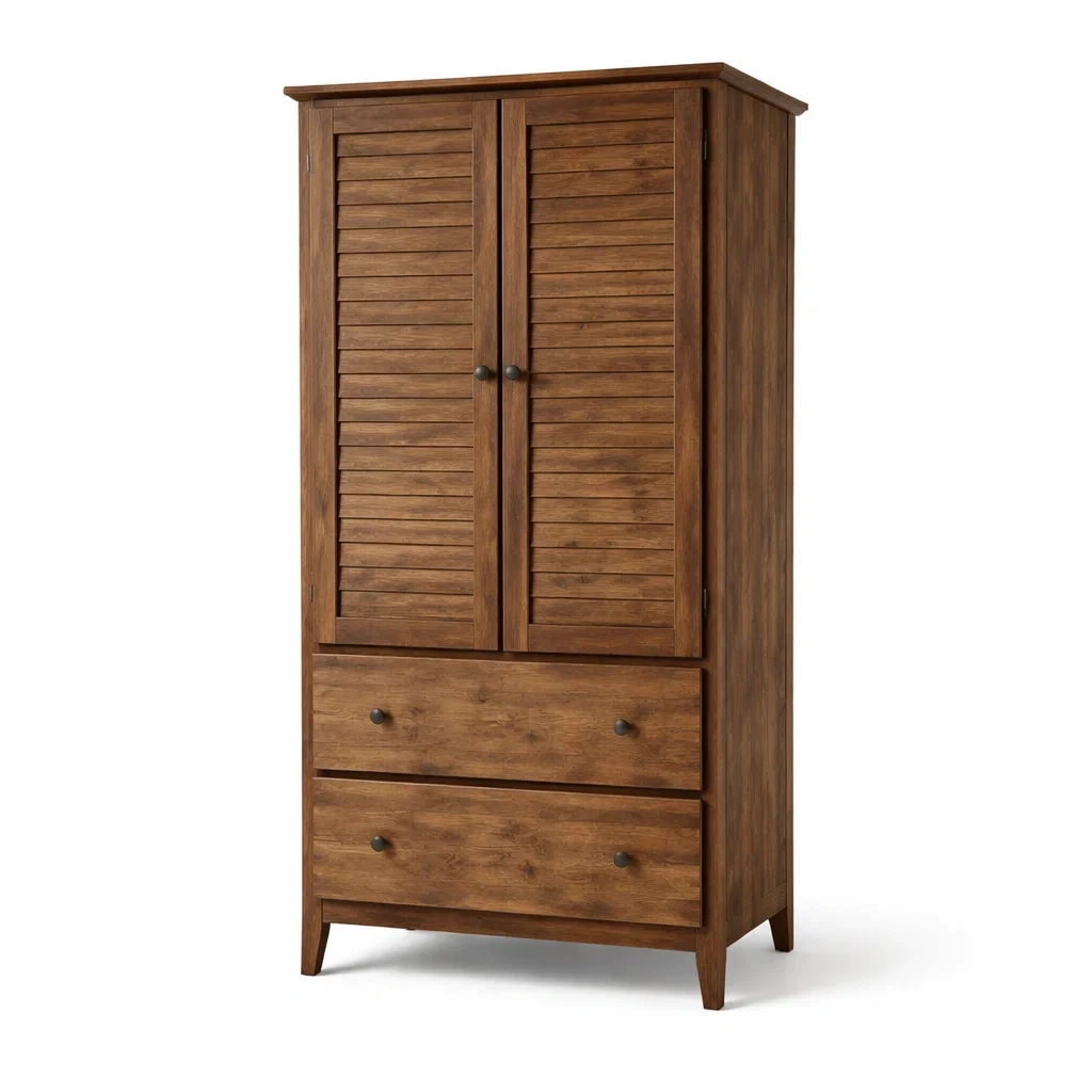 Armoire en bois de pin avec portes persiennes et tiroirs