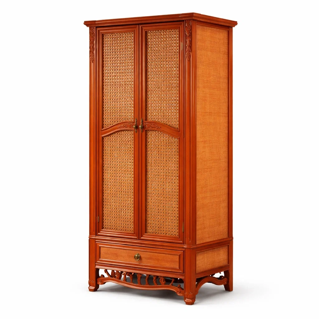 Armoire en bois et rotin marron avec 2 portes et 1 tiroir