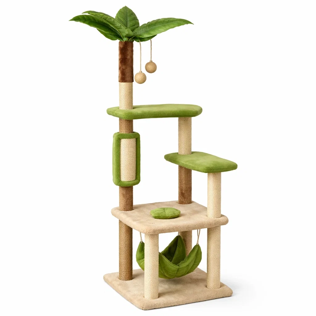 Structure : Plateformes multicouches, hamac, feuilles décoratives et balles suspendues.